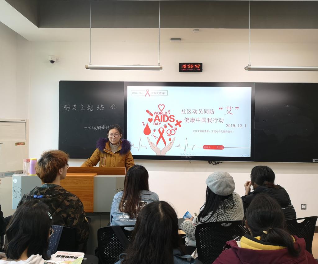 (通讯员 范利澳)12月3日上午,太阳成官网2018级朝鲜语班于409教室举办了防艾主题班会。此次活动由班级生活委员肖玉婷组织,2018级朝鲜语班全体同学参与此次活动。