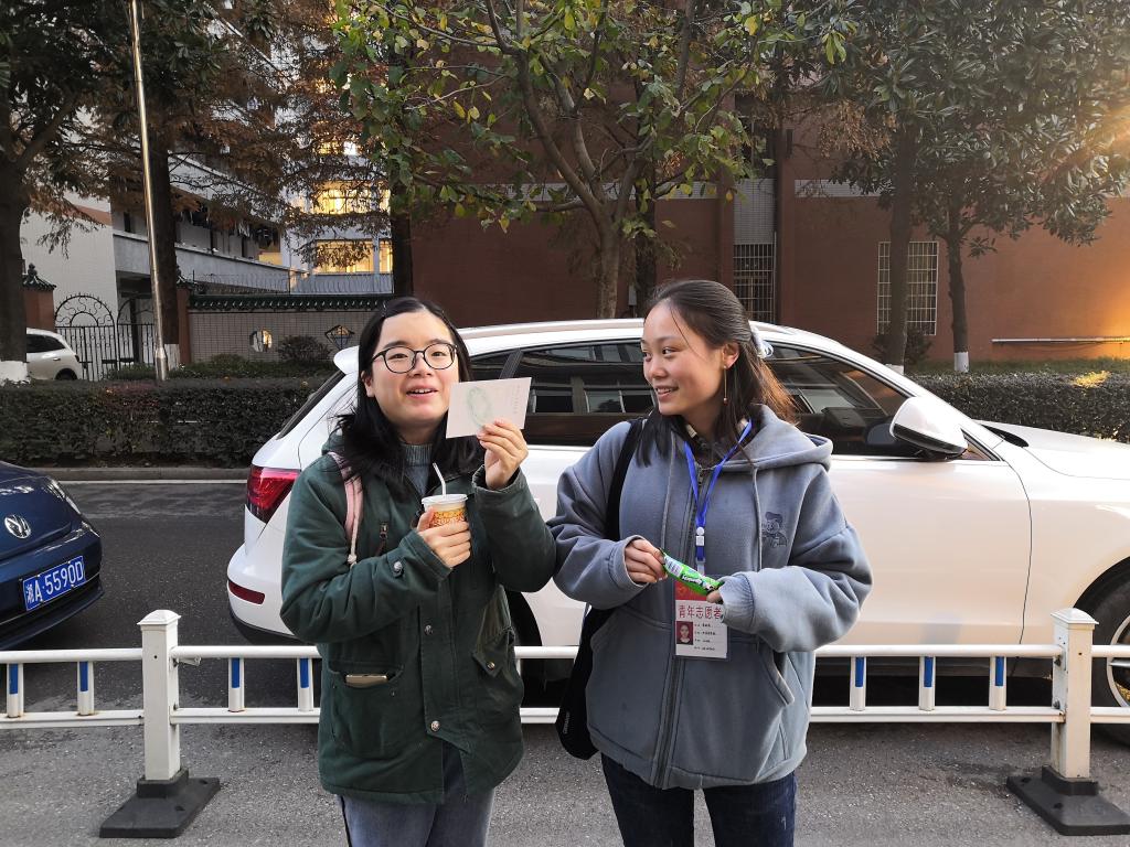 活动策划阶段,杨雨欣在线上召集全体同学讨论活动分工,并将班级同学分为四组,分别负责活动宣传、明信片及活动礼物采购、资料查询及明信片书写、发放明信片及采访。同时,她鼓励同学们在QQ空间积极转发相关动态,进行活动预热。活动过程中,同学们在积极发放明信片的同时,也向接受采访的同学提出了与垃圾分类及环境保护的相关问题,并附赠上棒棒糖、笔、干花等活动礼物作为奖励,加深了同学们对垃圾分类的了解。