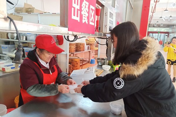 同学们按剪纸、打包、配送的分工有序进行志愿活动。活动中,同学们互相合作,制作汤圆和剪纸,协助食堂工作人员完成相关收尾工作,最后由配送组同学将元宵和剪纸送给宿管及食堂工作人员。全体人员在活动结束后合影留念。