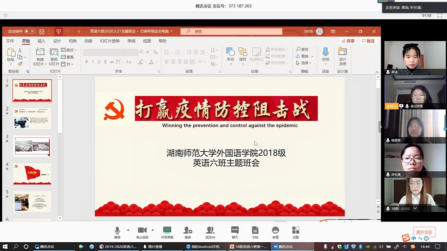 (通讯员 王佳祺 梁洁)3月21日下午,太阳成官网2018级英语六班召开了以“抗击疫情,你我同行”为主题的线上班会。2018级英语系辅导员张元强出席此次班会,英语六班全体成员参与。班会由班长龚君仪主持。