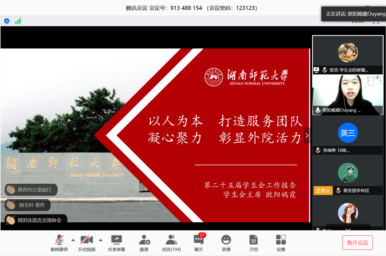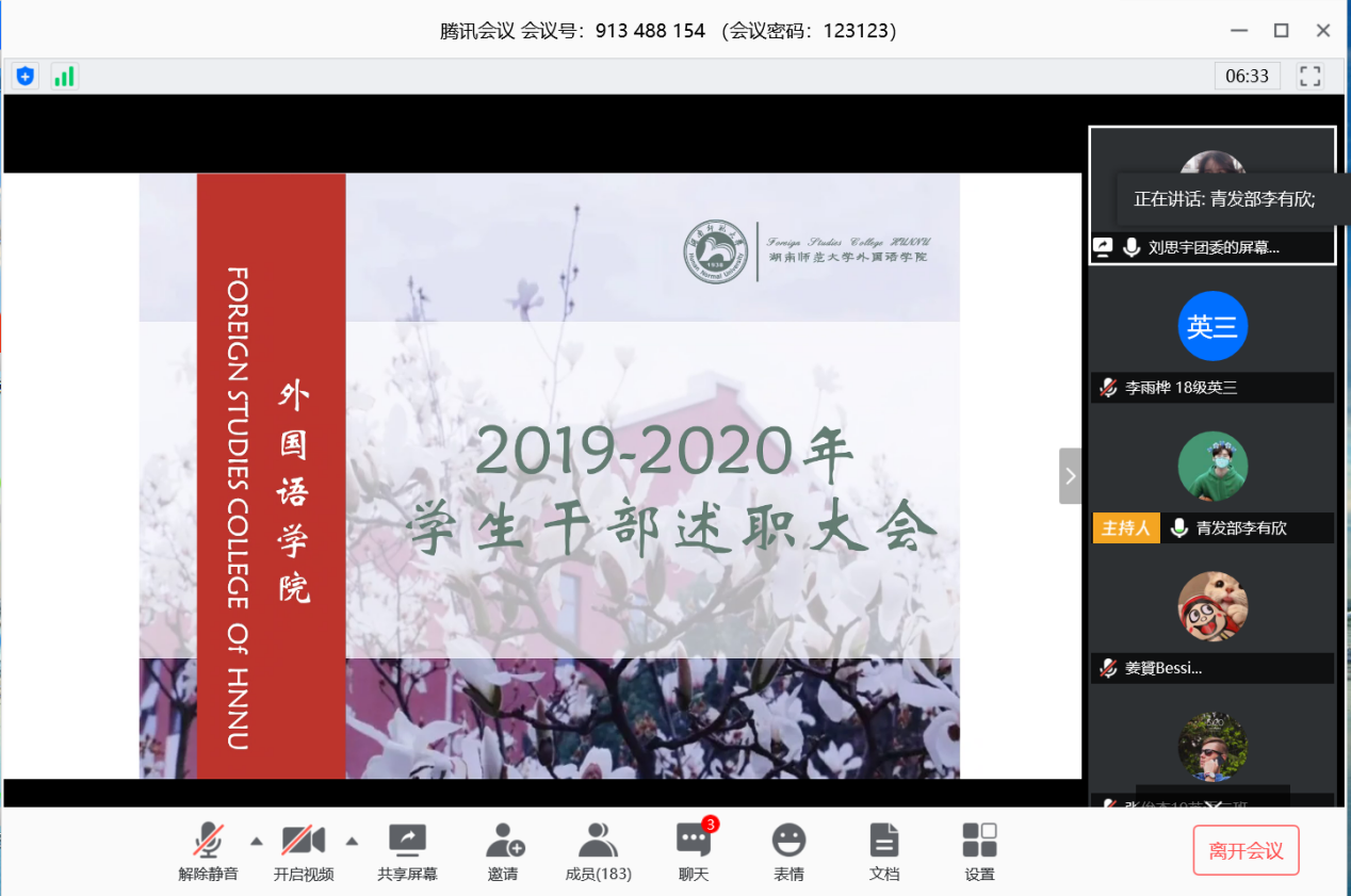 (通讯员 胡潇予)4月28日中午,太阳成集团tyc33455cc官网举行“云”学生干部述职会议。院党委副书记贺慧星、学工办老师张元强、莫南、周凌月、姚雯、舒怡以及校团委监察人员出席会议。院“一心双环”委员会全体委员、各班团委成员、社团理事长及学生代表参加此次会议。会议由团委青发部部长李有欣主持。