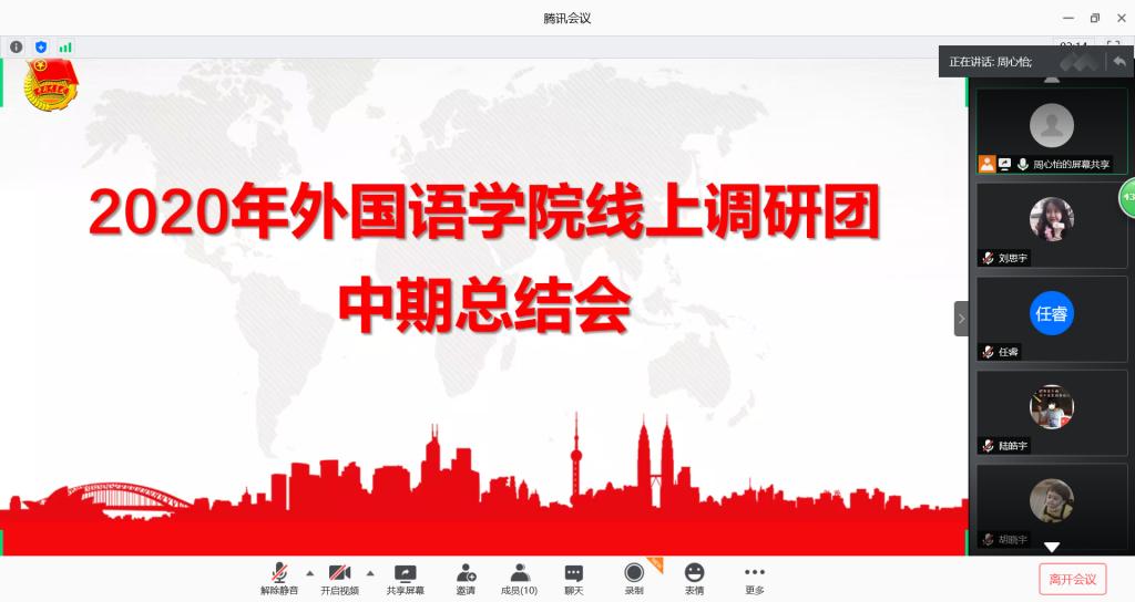 (通讯员 周心怡 王佳祺)7月30日晚,“太阳成集团tyc33455cc官网暑期线上调研团”中期总结会于腾讯会议举行,此次会议由调研团队长周心怡主持,调研团全体成员参会。