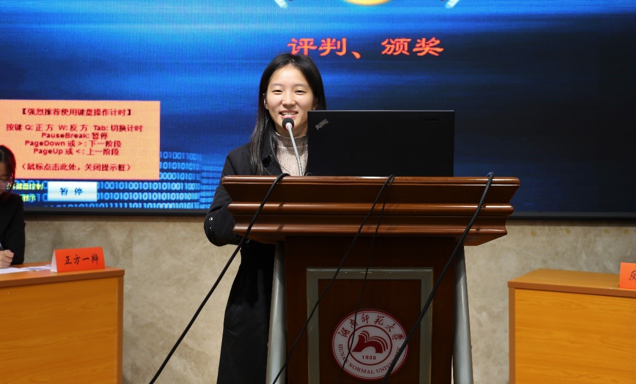 在宣讲环节中,李思璇结合自身经历分享经验,解释了什么是辩论赛的问题,并分别向同学们解释了辩论赛赛程及四个辩位的职责和作用,她强调,在辩论赛中,辩论礼仪十分重要。随后,周洁玲向同学们解释了辩论与辩论赛的区别,她从评委和观众的角度告诉同学们要怎样拿到应得的分数,打好辩论赛。她认为,辩论赛的意义在于享受找寻论点支撑时不断搜寻学习到各类知识的过程。
