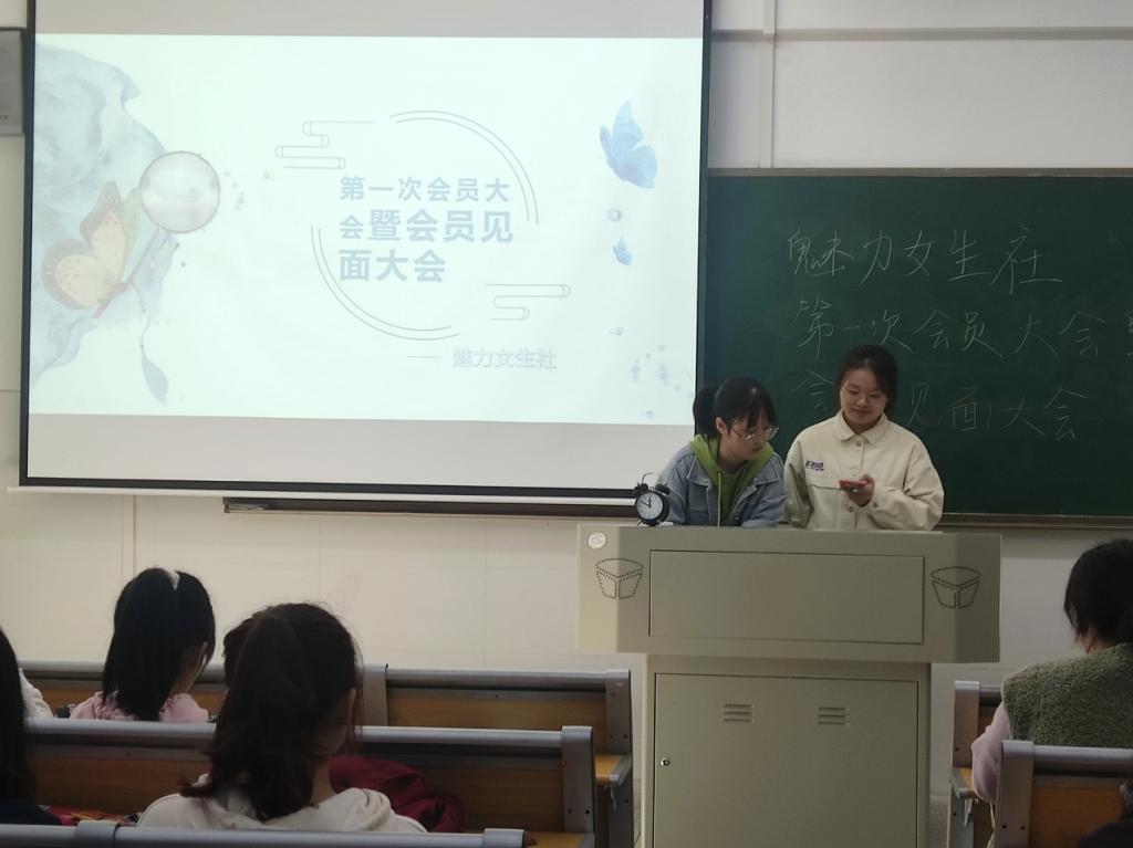 活动伊始,何甜甜从社团成立时间、宗旨、会徽、荣誉等方面介绍了魅力女生社;理事会成员依次上台发言,表达了对会员的友好期待。黄思思介绍了本学年的活动主题:蜕变。她表示,社团将围绕女生形象、气质、能力等方面开展活动,希望会员能够在活动中实现蜕变,遇见更好的自己。随后,会员积极参与了监事会的选举,根据线上民主投票的结果,理事会确定了一名监事长和两名监事。