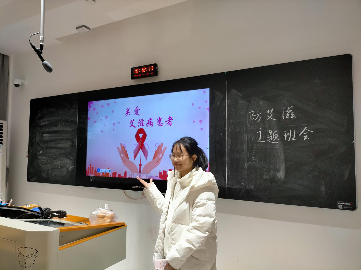 (通讯员 丁家宜)为宣传防治艾滋病的相关知识,做好防艾工作,12月2日下午,2020级英语三班在腾龙楼605教室举办防艾滋病主题班会。此次活动由2020级英语三班生活委员梁金婷主持。班级全体成员参与此次活动。