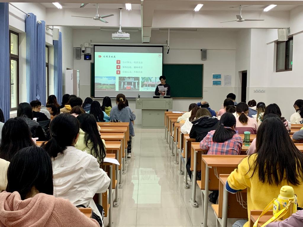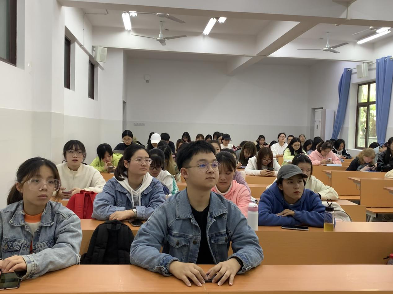 戈治文结合自己的社会实践经历,从科学型社会实践、服务型社会实践以及创新科研竞赛三个方面分享自己在各类竞赛和暑期社会实践中的经验。他指出,社会实践的重点首先在于“我愿意”,其次才是“我可以”,要有参与热情和积极性。他建议,社会实践的选题应综合指导老师与队员的建议并结合自身兴趣。此外,在人员选择上,他推荐同学们采用“3+1+1”模式,即以三名本院学生为团队基石,两名专业符合选题的学生为项目辅助。在活动的最后,他希望同学们可以发挥“国际视野,天下情怀”的学院精神,紧密结合自身专业,主动关注时政热点,将热爱付诸实践!