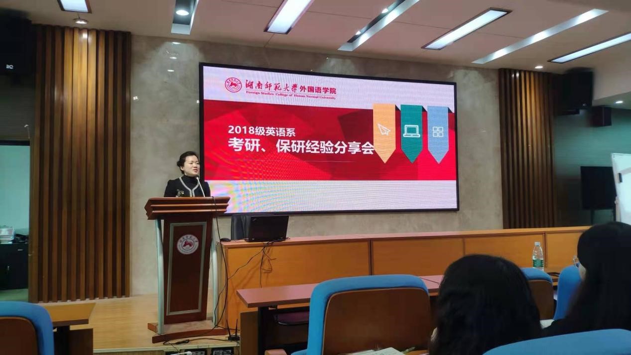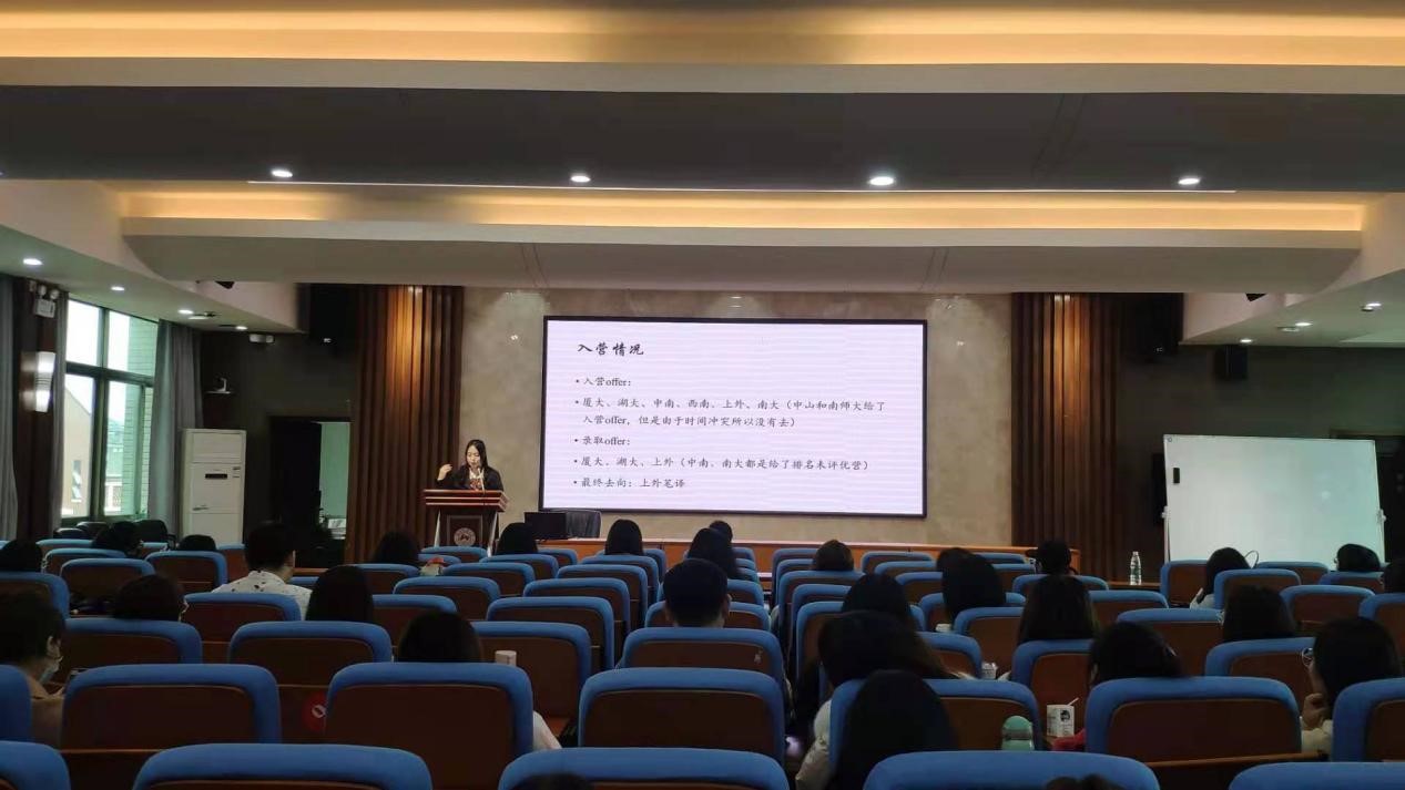 (通讯员 黄丽娟)4月12日中午,太阳成官网于腾龙楼515报告厅举行2018级英语系保研、考研经验分享会。英语系教授刘白出席此次大会,2017级优秀学生代表刘若琪、朱汁彬担任主讲人。