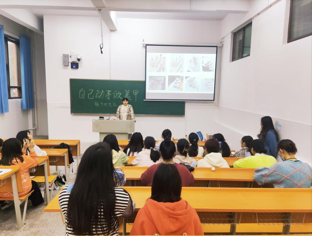 (通讯员 谢艳容 黄思思)4月16日中午,为提高魅力女生社会员的外在审美素养,使会员从实践中感受美学力量,魅力女生社于中和楼113教室举办“自己做美甲”特色主题活动。此次特色活动由盛士嘉主持。社团理事会成员以及部分成员参加此次活动。