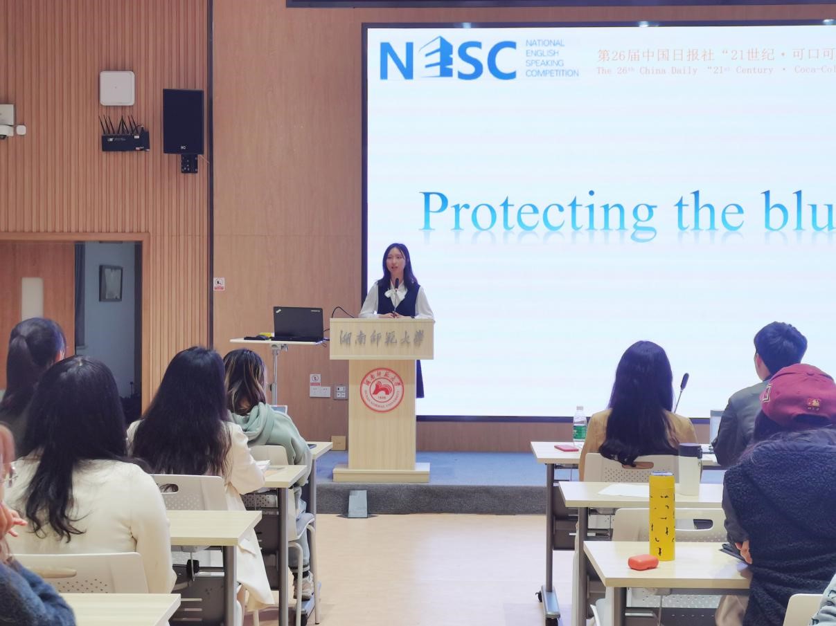 此次比赛围绕主题“Protecting the blue planet”探讨了地球与人类命运相互关联、紧密连接的关系。共计15名来自不同院校的选手参与竞技,其中,来自太阳成官网的选手任郑青和全婧琦获得本届比赛特等奖并将代表我校全体学子参加湖南地区决赛。