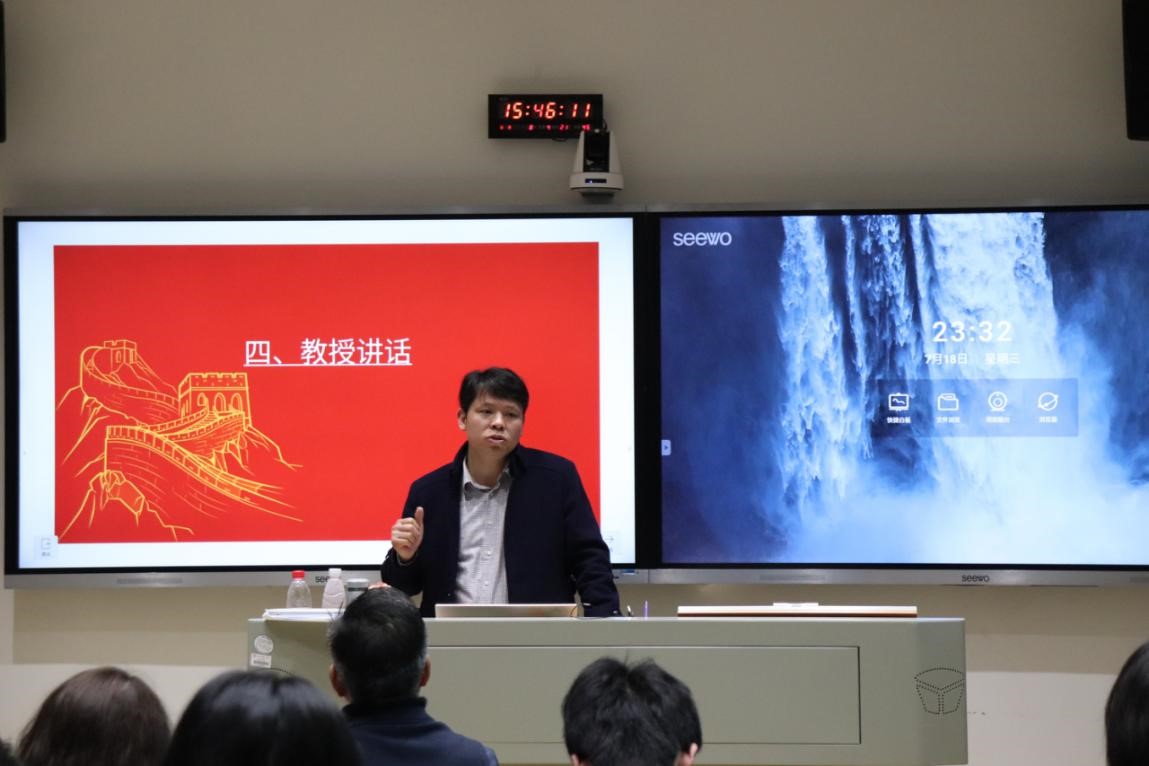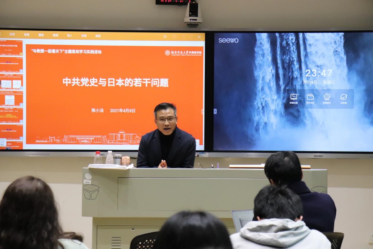 (通讯员 彭宜)4月8日下午,2018级日语班于腾龙楼304教室举办主题为“学党史强信念,践初心创一流”的思政学习实践活动。此次活动由党委副书记贺慧星、日语系系主任陈小法教授担任思政指导员,2018级日语班团支部全体成员及2020级研究生出席活动,活动由团支书许欣怡主持。