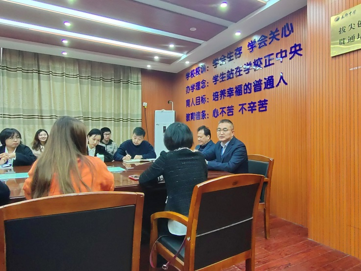 会议伊始,张辉向外院实习队表达热烈的欢迎,并围绕麓山外国语实验中学的历史沿革、办学情况、校园设施等方面向实习队详细介绍了学校详情。他指出,针对此次对接外院实习老师工作,麓外安排了具体部门负责人对接具体实习分工。