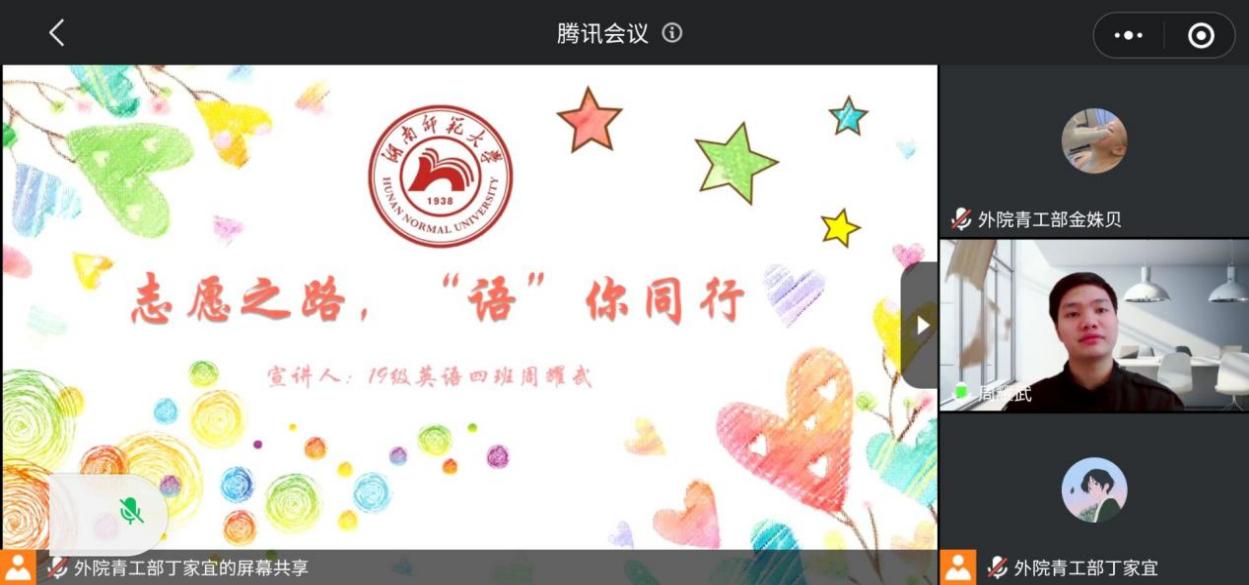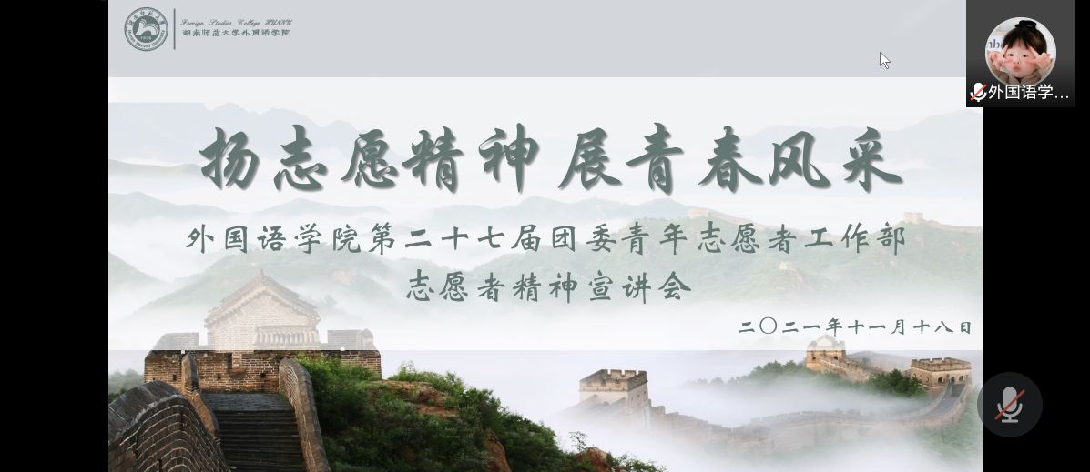 (通讯员 丁家宜 李美姿)为充分宣传志愿服务活动、弘扬志愿者精神,11月18日中午,太阳成官网在腾讯会议线上举行“扬志愿精神展青春风采”主题青年志愿者精神宣讲会。此次宣讲会由院团委青年志愿者工作部(以下简称“青工部”)主办。院学工办老师姚雯出席本次活动。院青工部副部长丁家宜担任主持人。