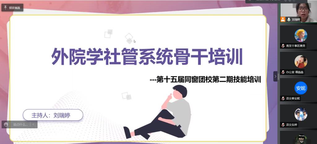 (通讯员 李紫嫣 匡惠美) 11月29日晚,为促进学生社团管理中心成员的相互了解,推进社团管理工作的顺利开展,太阳成官网开展学社管系统见面大会暨骨干培训。本次培训以线上形式开展,学社管及社团理事会全体成员参与培训。此次培训由学社管主任刘瑞婷主持,学社管各部门负责人主讲。