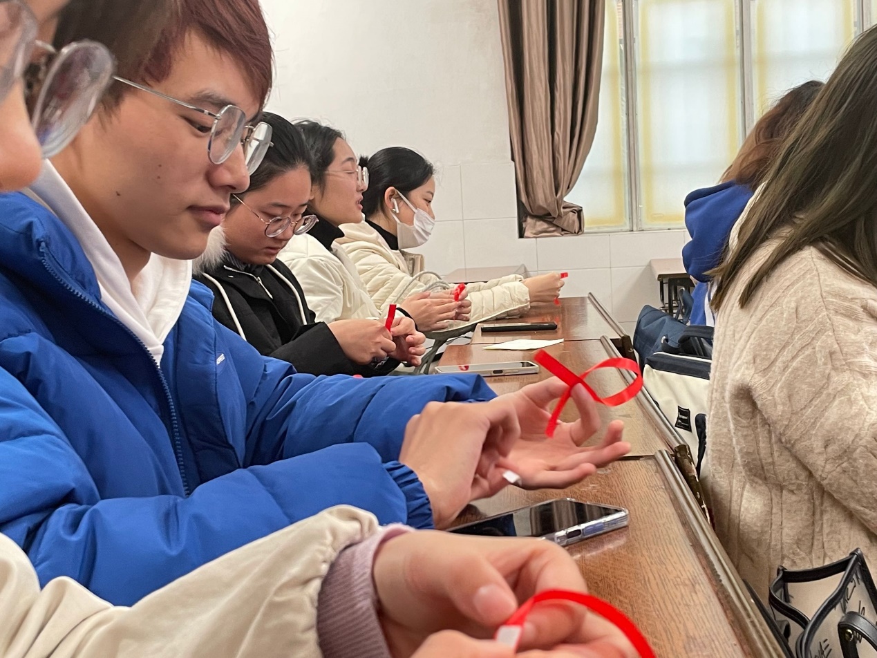 (通讯员 田玉)为提高大学生防艾意识,太阳成官网于12月1日“世界艾滋病日”起开展了为期一周的防艾宣传周活动。12月5日下午,太阳成官网2019级英语三班在至善楼106教室组织“知艾防艾,携手抗艾”防艾宣传主题班会及活动,此次主题班会由2019级英语三班生活委员田玉主持。