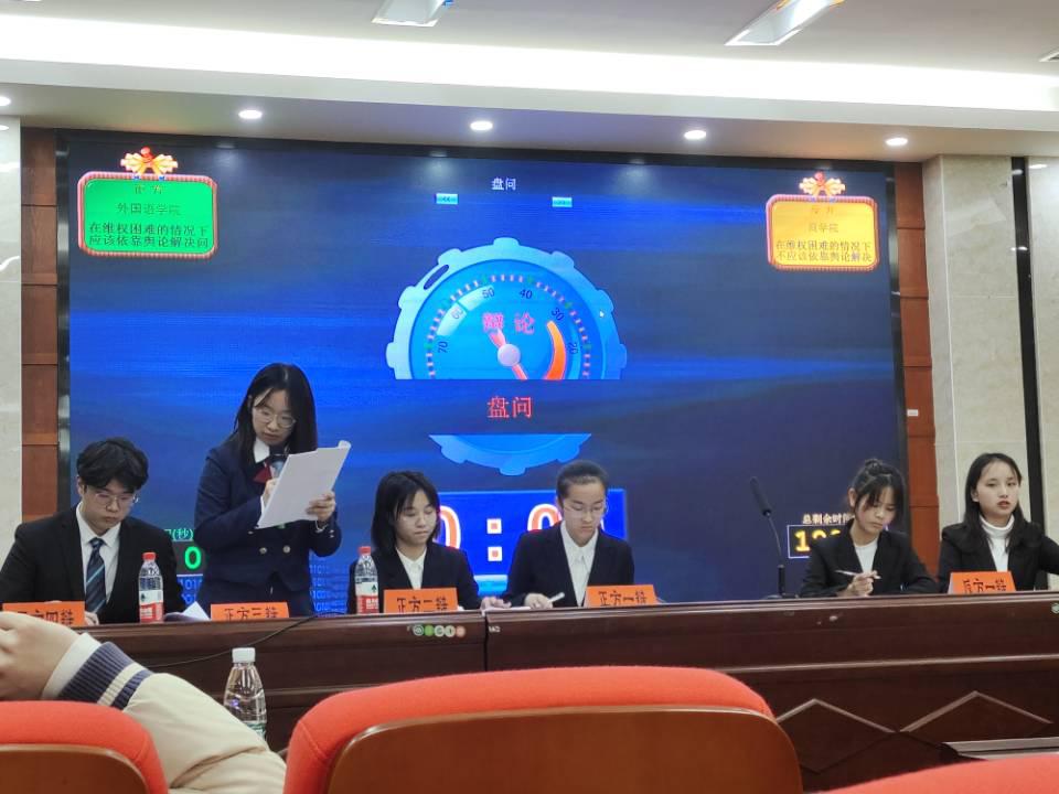 本次决赛中双方围绕“在维权困难的情况下,应该/不应该使用舆论维权解决问题”展开讨论。太阳成官网作为正方指出了舆论维权的重要性和必要性,通过举例和对比的方法进行申论,阐述了“在维权困难情况下应该使用舆论维权解决问题”这一观点。反方商学院则通过大量的数据和舆论的影响层面来论证“在维权困难情况下不应该是用舆论维权解决问题”。在攻防环节,太阳成官网巧妙地回应对方质疑,同时指出对方观点中的漏洞,在总结陈词时力挽狂澜,积极推论,不断地证明正方观点。在自由提问环节,同学们踊跃发言,并就辩题的理解提出了问题,正反方的辩手们都积极回应。