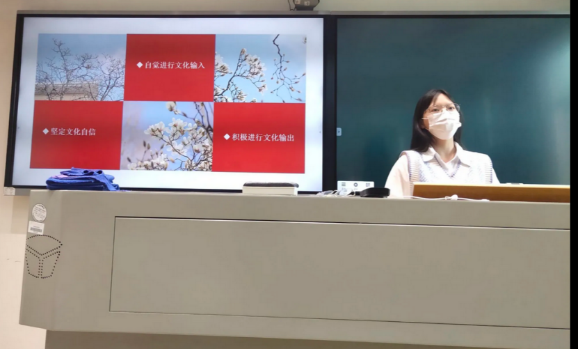 最后,石丽青同志对本次党员大会进行了总结,指出:于新时代青年而言,“讲好中国故事,传播好中国声音”永远“在路上”,并号召全体党员同志用文化做桥梁,始终做中华优秀传统文化的弘扬者,做文化自信自强的推进者,为提升中国话语的国际影响力贡献青春力量。