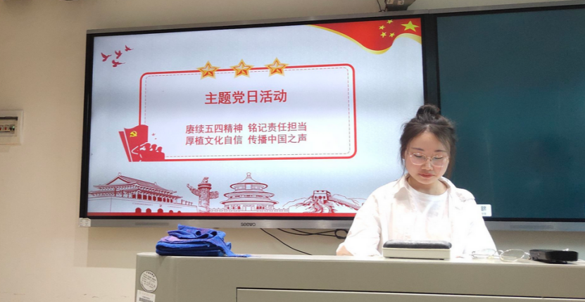 活动伊始,支部副书记石丽青介绍了本次的活动主题为“赓续五四精神,铭记责任担当;厚植文化自信,传播中国之声”。通过观看“五四”微电影、“中华优秀传统文化”教育短片,支部党员学习了青年前辈们如何用青春岁月践行使命担当;并以“青年”、“文化”等关键词作为切入点,对当代青年如何涵养爱国之情,砥砺爱国之志展开了讨论。