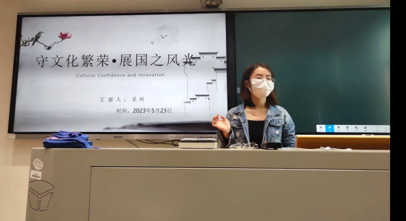 随后,支部党员同志就当代青年如何传承中华优秀传统文化进行了分享。李姗同志从坚固文化认同、坚定文化自信入手,认为当代青年应深入广泛地学习和了解我国优秀传统文化。羊叶同志从曾火爆出圈的《唐宫夜宴》谈到当代对传统文化进行创新推介的各位能人,表示我们青年学子应将传统文化与创新技术融合,以更好地推进发展。陈赛同志对此表示同意,认为青年学子应树立正确的价值观,加强文化的输出与传播。