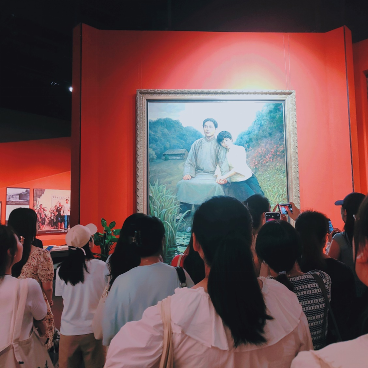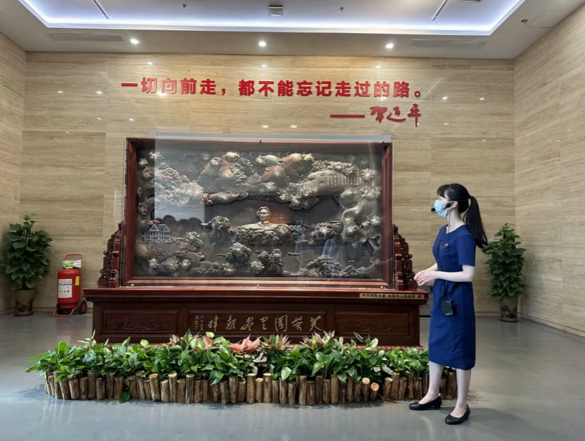 (讲解员介绍馆内展品“芙蓉国里尽朝晖”)