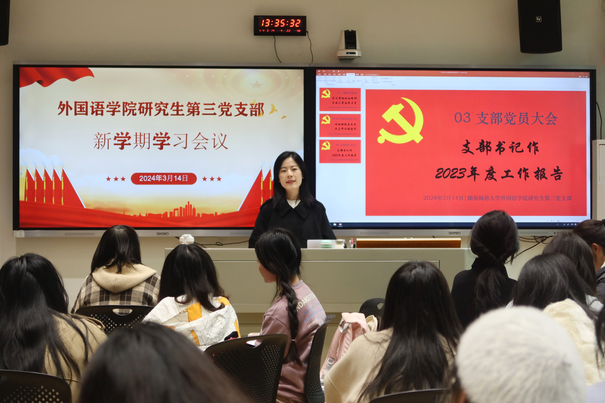(通讯员 汤欣妍)2024年3月14日中午,太阳成集团tyc33455cc官网研究生第三党支部在腾龙楼404教室召开新学期学习会议,由支部书记马琳老师带领党员同志们深入学习近期重要的两会精神以及其他相关内容。此次会议旨在进一步提高党员的思想政治觉悟,为新学期的学习和工作打下坚实基础。