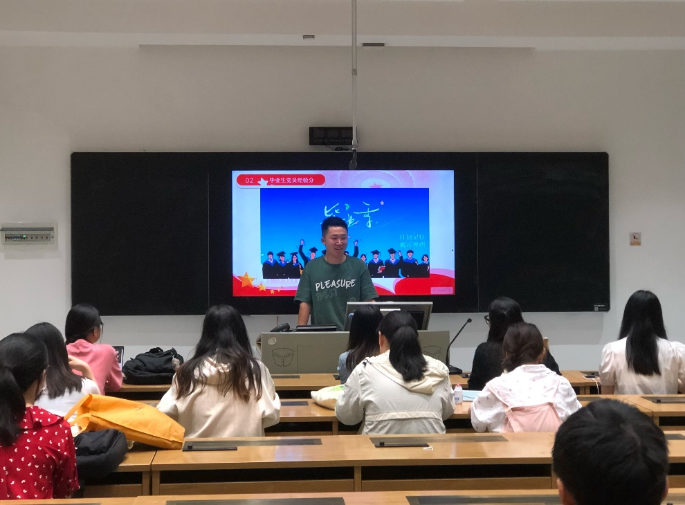 会上,六位毕业生党员夏晶、胡雯雯、邝艳丽、李习长、杨心怡和朱素珍同志分别结合自身实际情况,从科研、工作和生活等方面为支部成员分享经验。