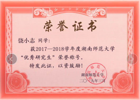 (黄宗同志获得湖南省普通高等学校2019届优秀毕业生)