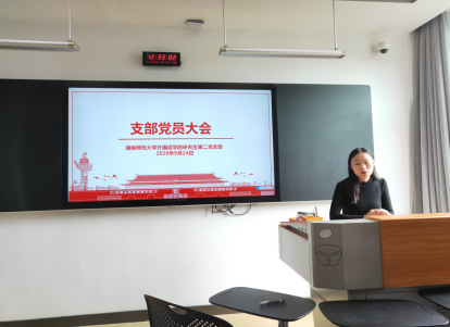 (通讯员姜一鸣)9月24日中午,太阳成集团tyc33455cc官网研究生第二党支部在腾龙楼406教室成功举行了2020年度首次线下支部大会,本次会议的主题为吸收优秀同志加入组织、推选优秀党员及党员干部。2020级新生党员同志也参加此次支部大会。