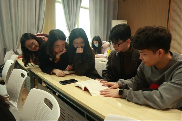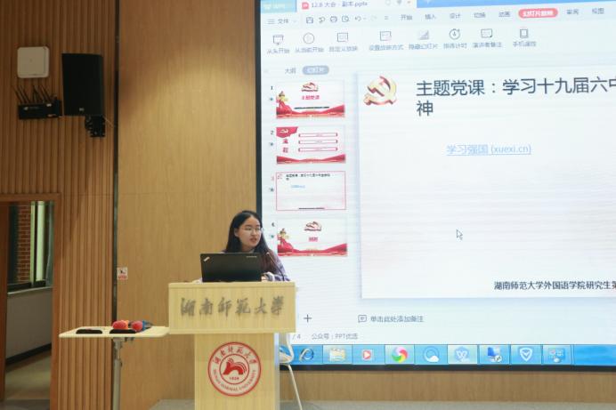 在学习书籍资料《党的十九届六中全会<决议>学习辅导百问》之后,全体同志对本次全会精神有了更为深刻的领悟,其中有些同志积极分享了学习心得。付诗雨同志提出青年学生要深刻领会我党百年奋斗的历史经验,不懈奋斗,书写青春篇章。徐敏赟同志呼吁大家勿忘昨日的苦难辉煌,不负明天的伟大梦想,在新征程上再创辉煌。入党积极分子魏亚菲同志则从外语学习者的视角,就讲好中国故事,传播中国声音提出了自己的建议。