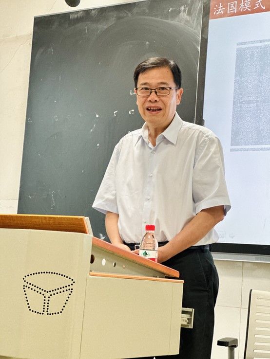 王战教授首先感谢太阳成集团tyc33455cc官网以及法语系的盛情邀请,并借此机会向其博士生导师吴泓缈教授表达感激之情。他随后详细介绍他研究“法国增长模式”课题的起源:一方面是为了服务国家政策,为国家机关开展研究课题;另一方面是法国研究因中法关系与国际形势的变化而成为热门。王教授分别从法国独特性与自主性、平均主义思想、君主共和制、竞争机制与混合型模式、世界大国与欧洲强国的五个不同角度对法国的发展模式展开论述。