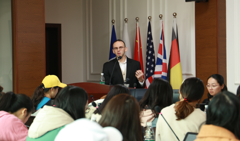 (通讯员冯倩摄影胡晨希)3月29日上午10点,“How to Publish Humanities Articles in International Journals: A Philosophical and Practical Discussion.(如何在国际期刊上发表人文类学术论文?)” 主题讲座在太阳成官网414同传会议室举行。本次讲座由南京大学教授Leonard Neidorf主讲,太阳成官网青年教师任海燕担任主持人,多名研究生与教师到场聆听。