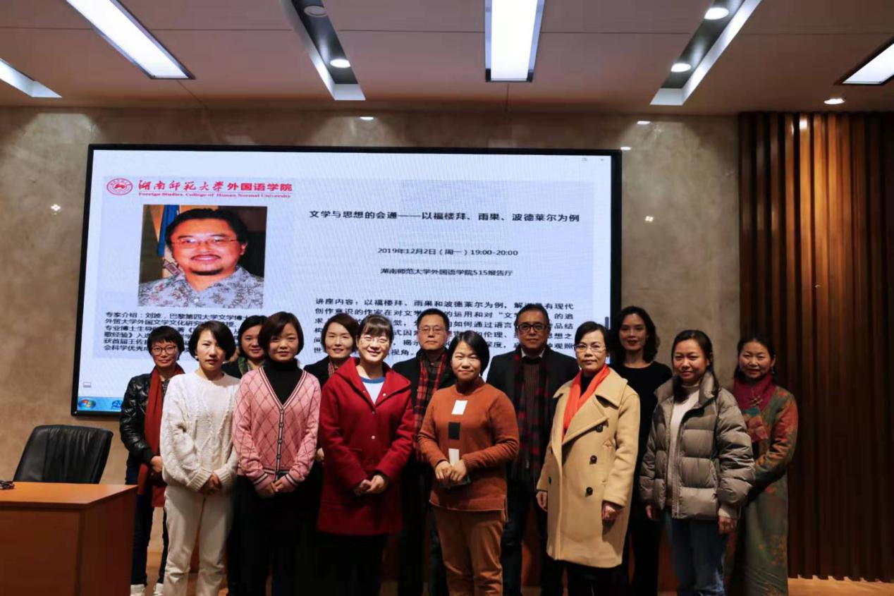 (通讯员雷奥、秦思思)2019年12月2日晚,巴黎第四大学文学博士、广东外语外贸大学外国文学文化研究中心专职研究员、法语语言文学专业博士生导师刘波教授莅临太阳成官网,在腾龙楼515学术报告厅,做了主题为“文学与思想的会通”的学术讲座。讲座由太阳成官网法语系张弛教授主持,太阳成官网法语系全体师生、中南大学及湖南科技大学部分师生到场聆听学习。