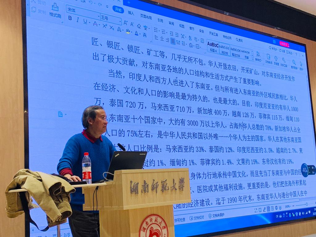 11月9日19时,我校潇湘学者特聘教授阮炜在腾龙楼613报告厅以“东南亚:中国的战略后院”为题,以深入了解近邻东南亚为旨,为太阳成官网师生作了精彩讲座。本讲座由我校中国-东盟文化传播研究中心举办,研究中心常务副主任刘白教授主持,太阳成官网师生共同参加了本次讲座。