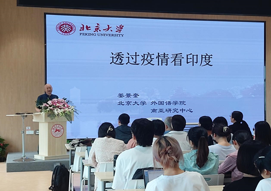 姜景奎教授首先为大家讲解了印度政府宣布"战疫成功"后印度爆发新一轮疫情的原因,并通过大量鲜活的图片资料和客观的数据资料带领大家了解疫情之下的印度实况。姜教授还从宗教、文化、信仰等角度帮助大家理解印度疫情期间的种种"怪相",引导我们放下偏见,学会从印度的视角看印度,而不是只局限于中国观念里的印度。此外,姜教授还向大家介绍了中国特色的国别和区域问题研究方法以及新时代"非友不敌"的中印关系,呼吁学生们要学会通过"荷花与荷叶"、"莲藕"等表层现象挖掘出背后的"水"和"泥"等深层原因及内涵。