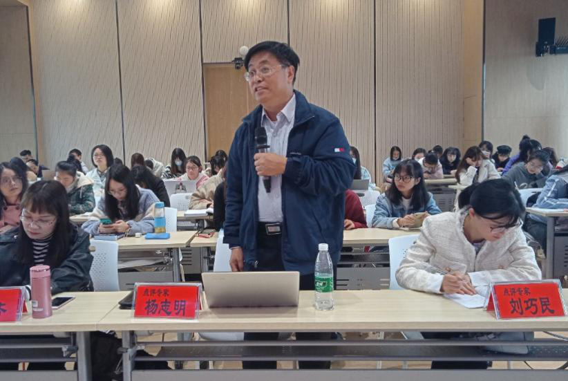 示范课后,三位专家从理论和实践角度对这两堂课进行了全方位点评与指导。黄芬老师和刘巧民老师结合长沙市初中英语教学实际,从教师自身具备的专业知识、课堂教学目标、教材内容处理、教学活动设计等方面对这两堂课进行了点评,充分肯定了这两堂课对乡村英语教学所起的引领示范作用,同时对这两堂课的进一步完善提出了具体的指导性意见与建议。杨志明老师从教学目标和内容、教学过程与方法、教学效益与评价三个方面对这两堂课进行了理论指导和梳理,指出英语课堂教学应该让学生掌握四个模块的知识,即语法知识、语境知识、功能知识和社会语言学知识,同时还要提升学生五个维度的能力,即理解能力、表达能力、语用能力、语言策略能力和翻译能力。三位专家的精彩点评与指导让参与此次培训的资兴市英语教师受益匪浅,促进了他们在教学理念、教学方法、教学艺术、教学评价等各方面的专业成长。