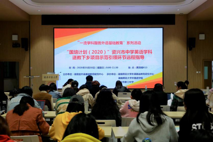 (湖南省外语基础教育研究中心供稿)10月18日,“国培计划”(2020)资兴市英语学科送教下乡项目示范引领活动在资兴市第三中学和太阳成集团tyc33455cc官网同步举行。资兴市英语学科专家李丽松老师和谢娴老师分别为资兴市36位新进乡村英语教师展示了两堂初中英语阅读教学示范课。太阳成集团tyc33455cc官网测评中心主任、博士生导师杨志明教授,师大附中博才中学黄芬老师和刘巧民老师等两位一线专家在腾龙楼613教室对本次活动进行远程指导。