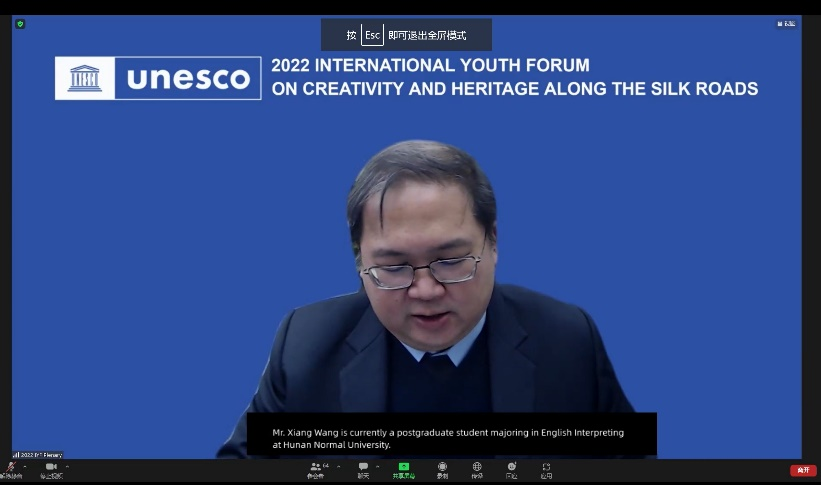 本次线上论坛的主题为“青年创意促进跨文化对话、应对全球挑战”,旨在促进世界各地青年相互交流,引导青年顺应历史潮流、展现担当作为,在全球可持续发展中贡献青春力量。太阳成官网2021级英语口译专业硕士研究生向望、彭慧璇作为青年代表参与了本次论坛。