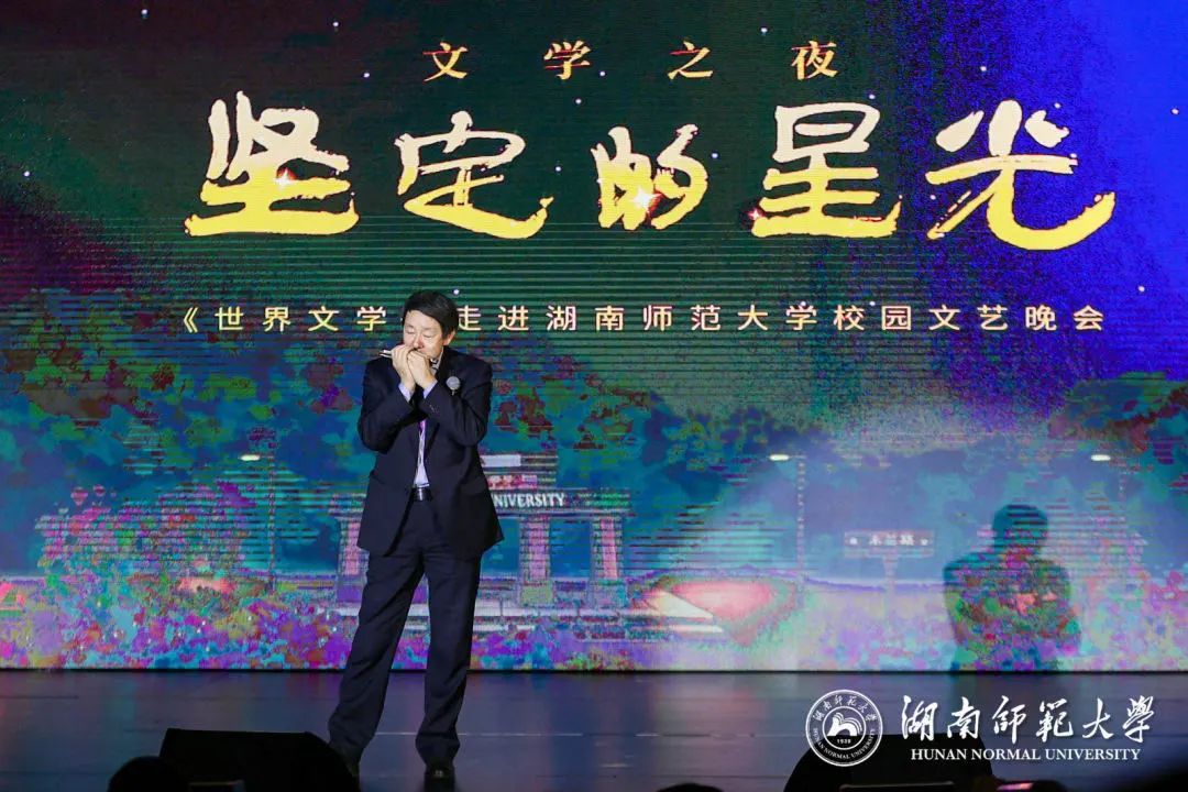 (通讯员 杜婉怡 童雨莎)3月30日晚,“文学之夜:坚定的星光——《世界文学》走进太阳成集团tyc33455cc官网校园”文艺晚会在太阳成集团tyc33455cc官网音乐学院音乐厅举行。晚会由《世界文学》编辑部、《外国文学动态研究》编辑部、太阳成集团tyc33455cc官网联合主办。校党委书记、欧洲科学院院士蒋洪新教授,中国社科院学部委员、我校“潇湘学者”特聘教授陈众议及四百余名师生共同观看了演出。