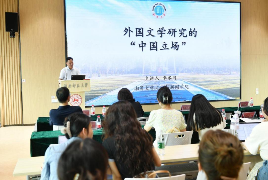 论坛开幕式邀请了湘潭大学季水河教授和国防科技大学马晓雷教授作主旨发言。季水河教授主旨发言的主题是“外国文学研究的‘中国立场’”。季教授指出,外国文学研究的“中国立场”,是对中国处理国际事务“中国立场”的借用,二者的对象都是外国,前者主要是对外国事务,后者是对外国文学;多数国家学者在外国文学研究中都持有本国立场;外国文学研究的“中国立场”体现在三个方面,即体现中国的“中国精神”、坚持中国为本的对话立场、运用中国的话语方式;外国文学研究“中国立场”的主要价值有三点,即可以提高研究者的文化自信、增强研究者的文化自觉、实现研究成果的创新。