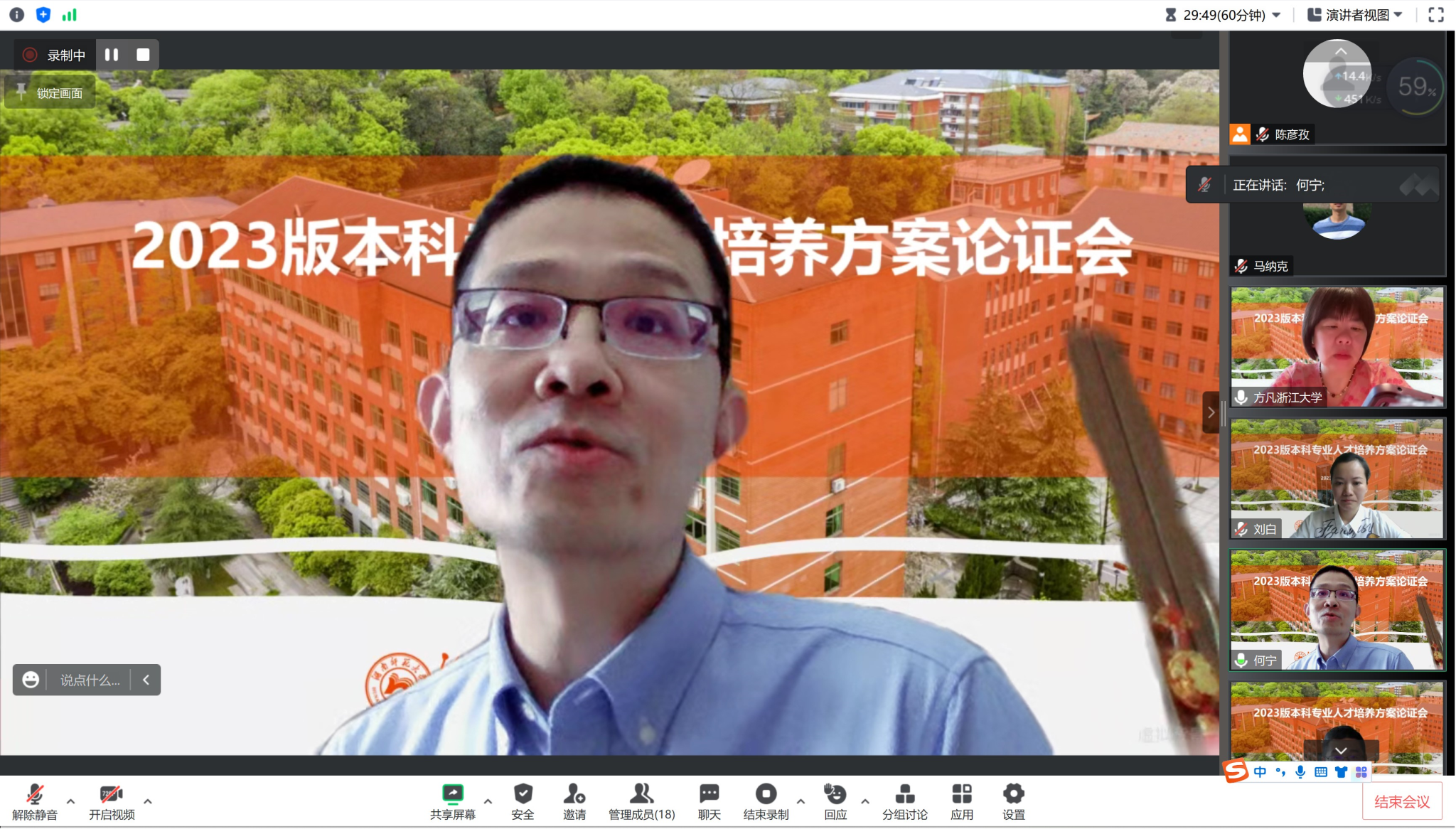 刘白教授首先介绍了人才培养方案修订的背景。此次新版培养方案是在2021年版本基础上的进一步优化,一是为了新一轮本科教学评估,规范师范类与非师范类人才培养方案撰写格式;二是经过两年的经验积累,各专业在课程设置、实践实习、“三进”融入等方面进行了优化,对新文科、复合型人才培养也有了新的思考;三是新增了“英语+法学”本科双学位项目。