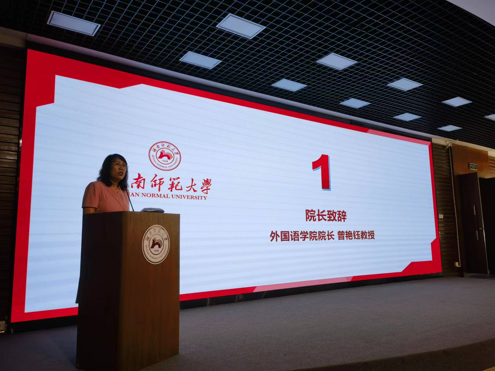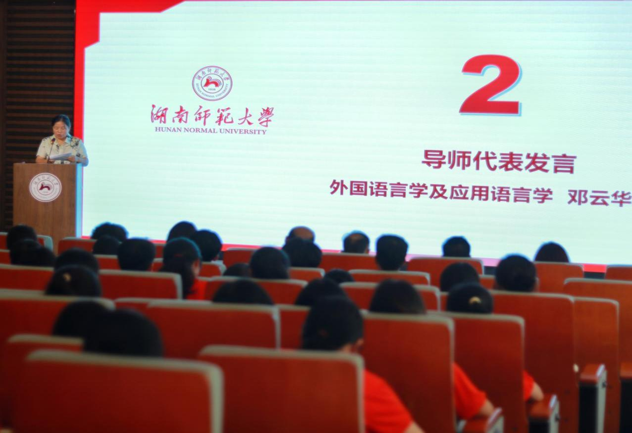 在导师代表发言环节中,外国语言学及应用语言学方向负责人邓云华教授向来到太阳成集团tyc33455cc官网继续深造的研究生新同学表示衷心祝贺。邓教授希望新同学在硕士生、博士生阶段要做好3件事:读书、做人、写文章,要广泛而精深地涉猎学科知识、全面提升能力和素质、学会做科学研究。要广泛阅读,扩大自己的学术视野,阅读的范围要更专,更深入,量更大;做人方面要学会做到志向宏伟、意志坚定、情绪乐观、为人豁达;学术方面要注意知识积累,做到“努力学习,广泛涉猎,勤于笔耕”。