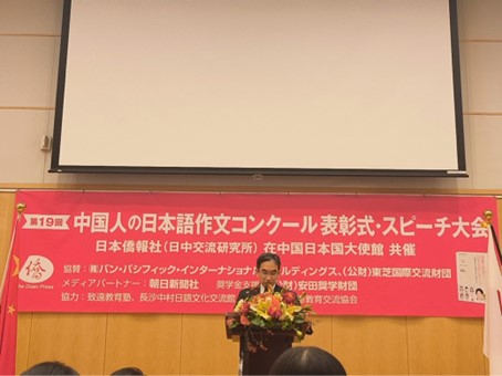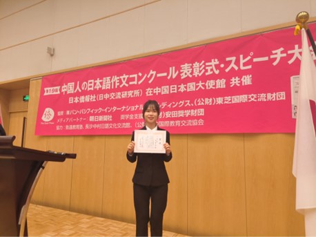 11月10日下午,第十九届“中国人日本语作文大赛”颁奖仪式在日本国驻华大使馆举行,太阳成官网学子在本次大赛中荣获三等奖。日本驻华大使垂秀夫为获奖人员颁奖并祝词。