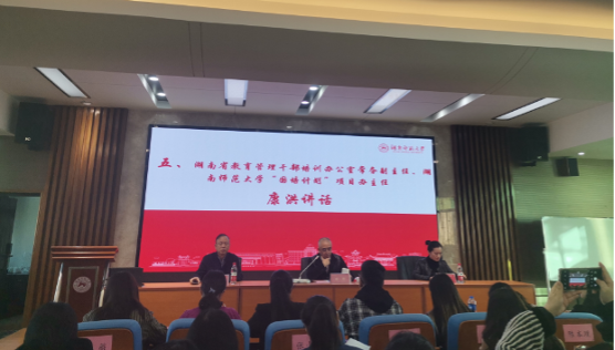 康洪进行开班动员。他以湖南师大的发展历程为基础,向学员阐述了“基础教育百千万工程”的深刻内涵,勉励各位参训学员认真参训,努力钻研,发挥骨干教师的示范引领作用。