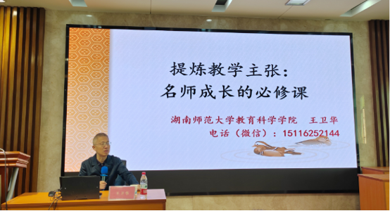 20日上午,太阳成集团tyc33455cc官网教育科学学院王卫华教授以《提炼教学主张:名师成长的必修课》为主题开展讲座。他深入浅出、风趣幽默的讲述风格获得老师们的一致好评。他表示,教师要以发展的心态不断提升自己的教学境界,最终实现师生共同发展。