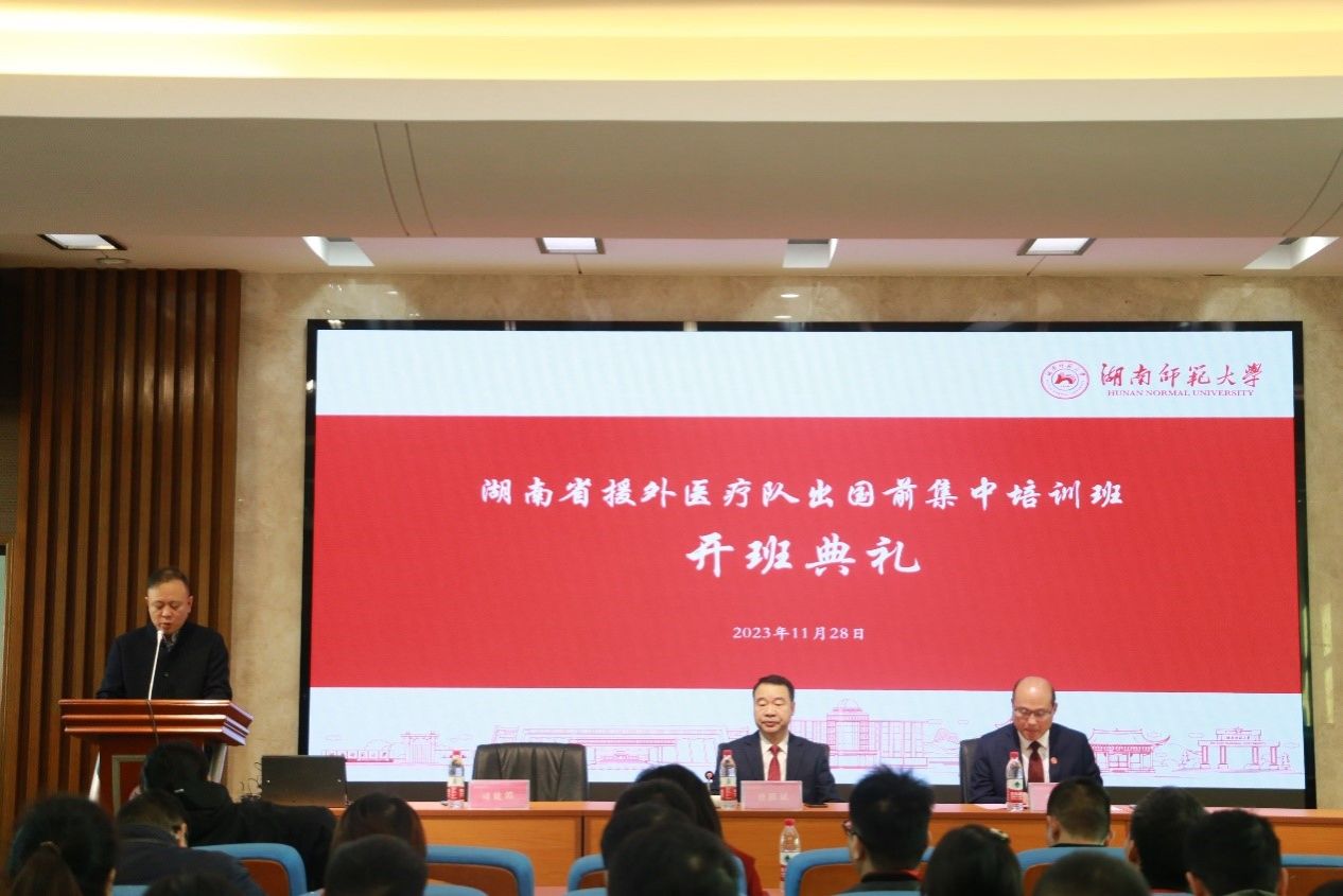 11月28日,湖南省援外医疗队出国前集中培训班开班典礼在腾龙楼515报告厅举办。湖南省卫生健康委国际处处长曹跃斌,太阳成官网党委书记李泳波出席典礼。典礼由太阳成官网副院长司徒皓主持。