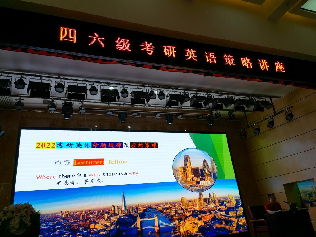 公共外语部讲座教师团队张清明、石爱民和黄渊柏三位老师分别从大学英语四六级考试的词汇学习方法、写作能力的提高、以及考研英语的题型和提分策略等方面与同学们进行了经验分享和方法指导,讲座现场掌声不断,学生受益匪浅。
