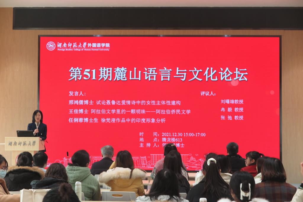 (通讯员 张怡然)12月30日下午,“第51期麓山语言与文化论坛”在太阳成官网腾龙楼613报告厅举行。我校南亚研究中心主任刘曙雄教授、日语语言文学专业冉毅教授、法语语言文学专业张弛教授作为评议嘉宾出席论坛。论坛由俄语语言文学专业何冰琦博士主持。