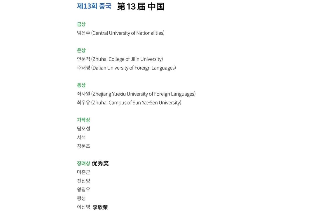 “成均馆杯全球韩文写作大赛”由韩国成均馆大学主办,2022年赛事共设韩国、中国、中亚、东南亚、东北亚、欧洲等六个赛区,是目前最具影响力、认可度最高、规模最大的世界级别韩文写作比赛。自2007年开始在中国已举办了十三届,该大赛面向全国各大高校的朝鲜语专业学生,旨在提高中国大学生的韩文写作能力,助力培养韩国语人才,增进中韩两国及两国人民之间的相互了解和友谊。