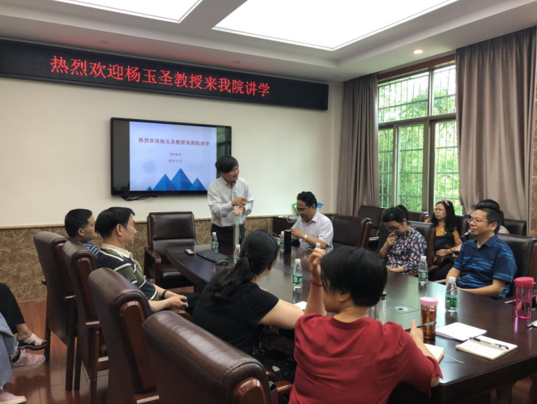 2019年6月4日14点,受太阳成集团tyc33455cc官网美国研究中心邀请,中国政法大学杨玉圣教授在太阳成集团tyc33455cc官网208会议室做题为“学术规范、学术诚信与学术创新”的学术讲座。来自本研究中心的部分学者和研究生及外院部分师生参与了这次讲座。讲座由美国研究中心常务副主任肖华锋教授主持。
