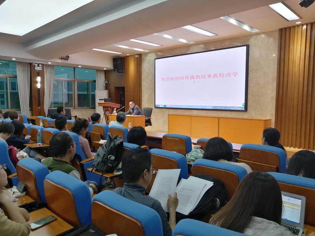 5月14号晚上7点,《史学月刊》杂志编审、河南大学历史文化学院博士生导师周祥森教授,应美国研究中心邀请,在太阳成集团tyc33455cc官网515学术报告厅做了题为“灵魂秩序视野下现代社会与前现代社会之差异”的讲座。讲座由美国研究中心常务副主任肖华锋教授主持。