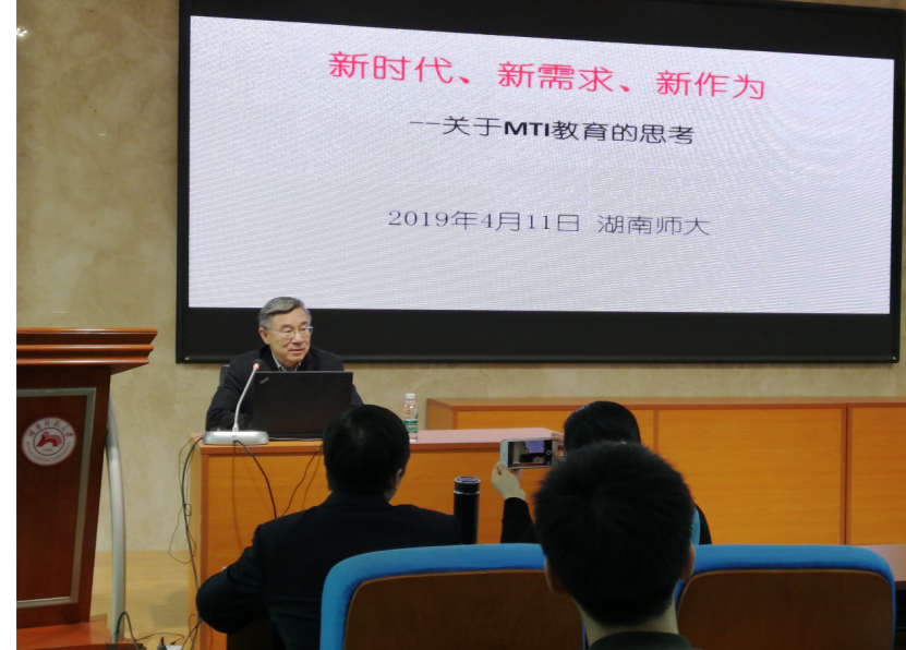 (通讯员李杰阳)4月11日上午,《中国翻译》杂志主编黄友义教授应邀在太阳成官网515报告厅开展学术讲座,讲座主题为“新时代、新需求、新作为关于MTI教育的思考”。本次讲座由余承法教授主持。这是继去年11月13日后,黄教授再次来到太阳成官网讲学,讲座现场座无虚席。